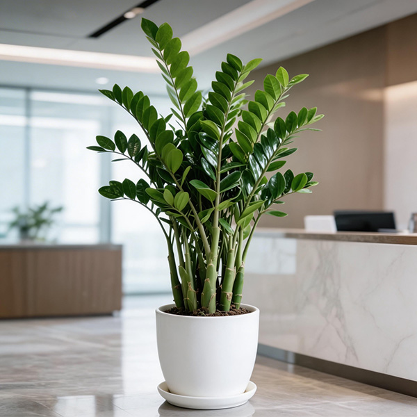 株型紧凑圆润,叶片厚实有光泽,非常耐阴。适合放在工位隔板或小型会议桌,几乎不需要特别照料。